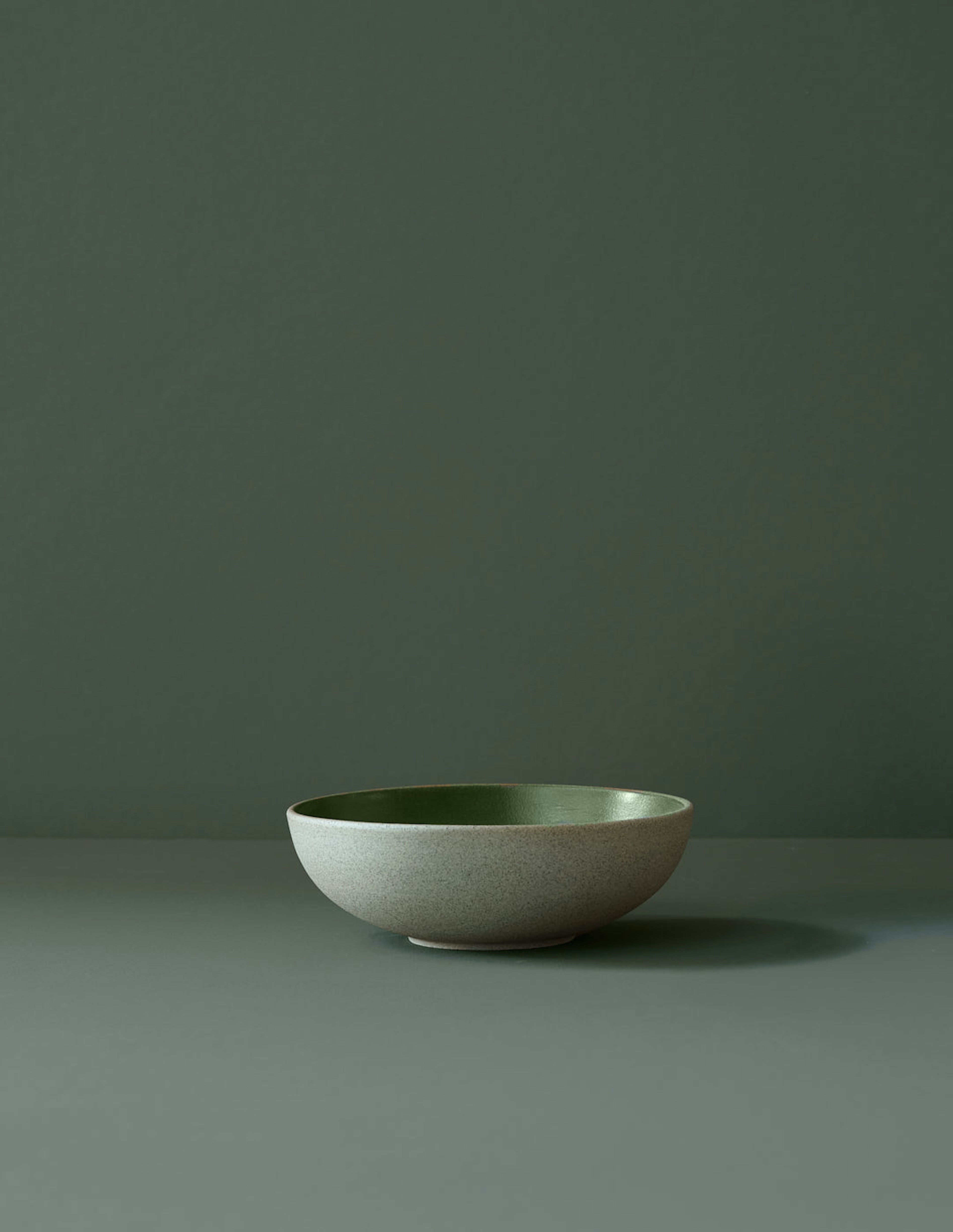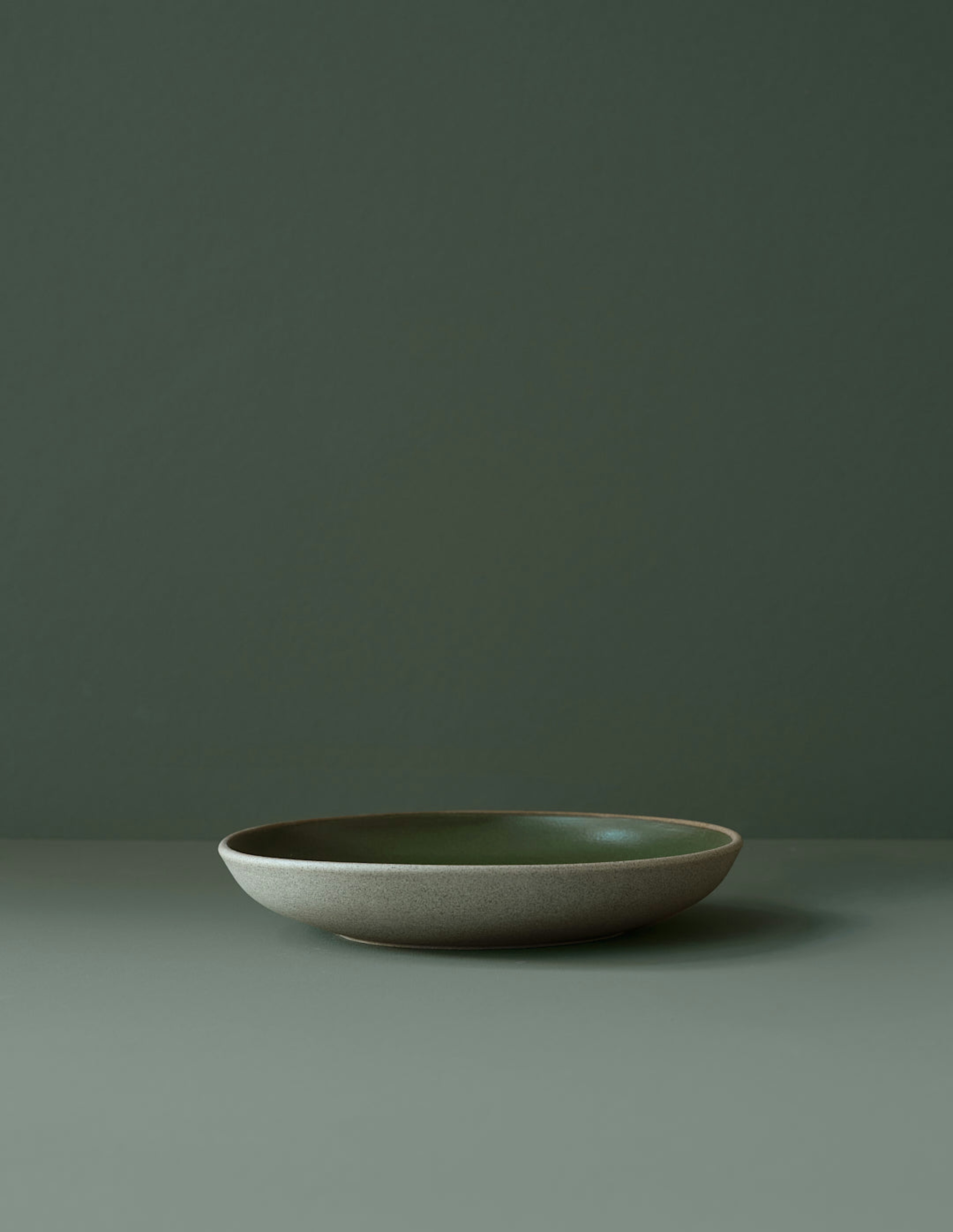 The Ancher Everyday collection is composed of simple and timeless shapes made for everyday habits. Each piece is hand glazed and hand finished. The Deep Plate is made with a deep green glaze on grey-brown clay.