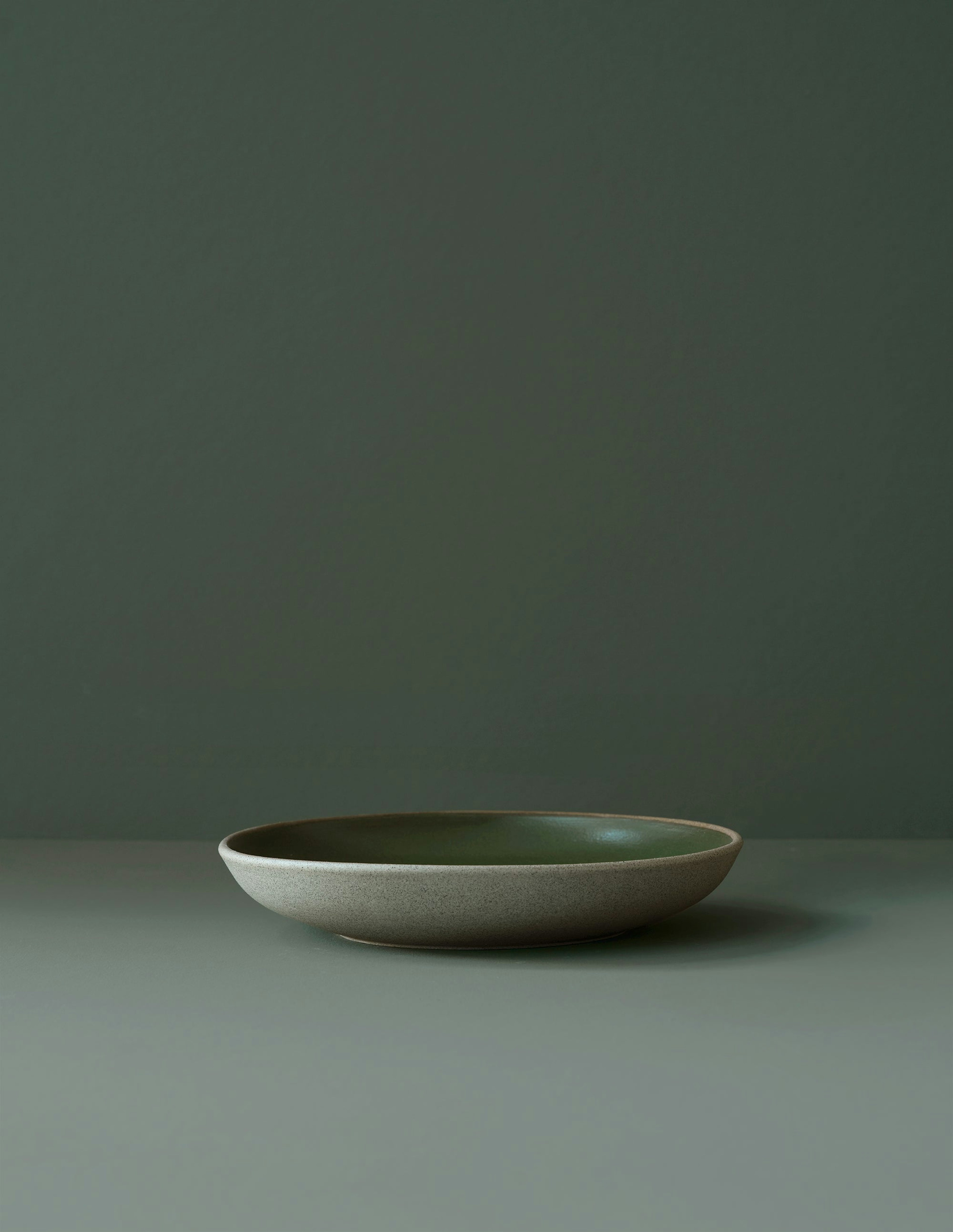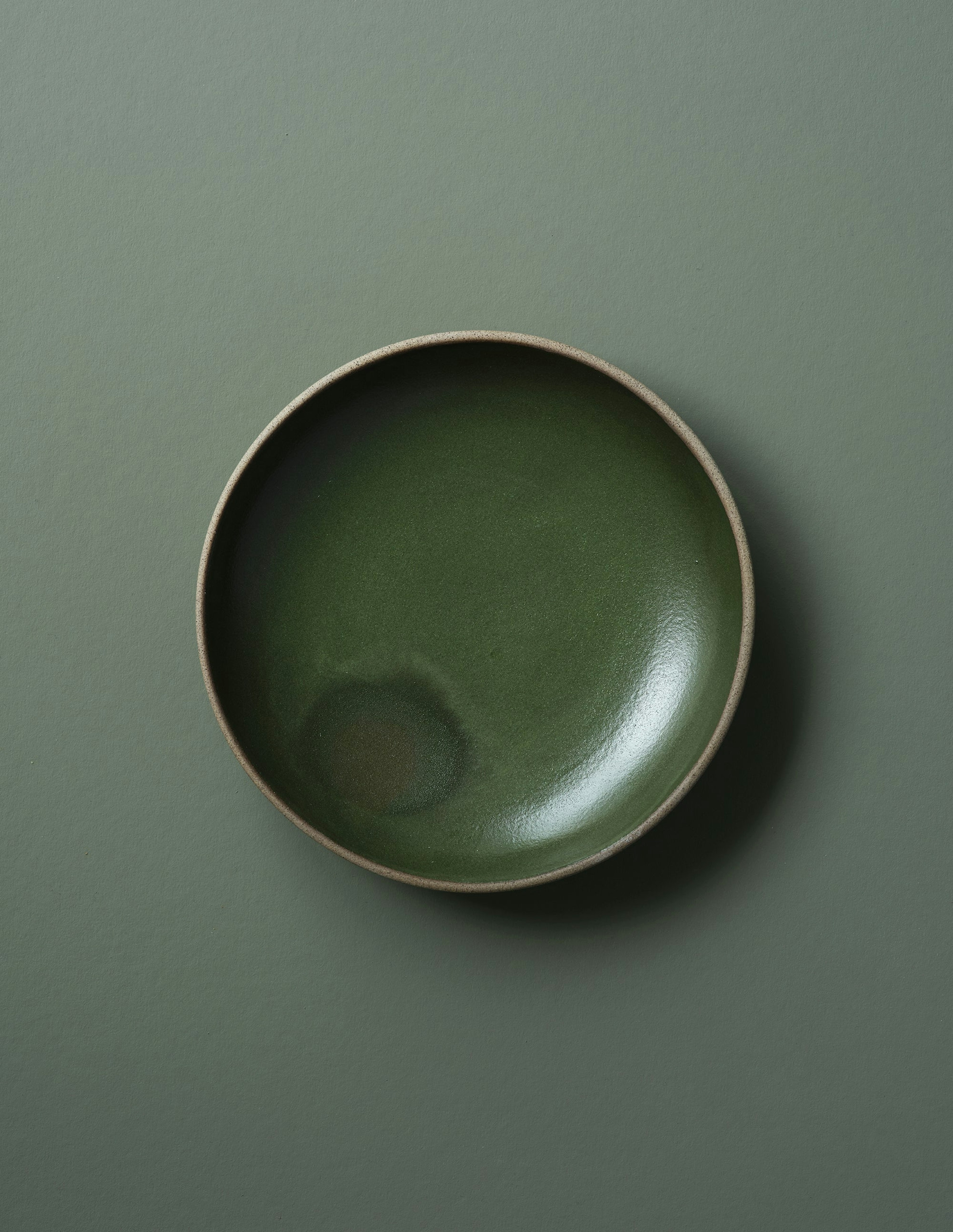 The Ancher Everyday collection is composed of simple and timeless shapes made for everyday habits. Each piece is hand glazed and hand finished. The Deep Plate is made with a deep green glaze on grey-brown clay.