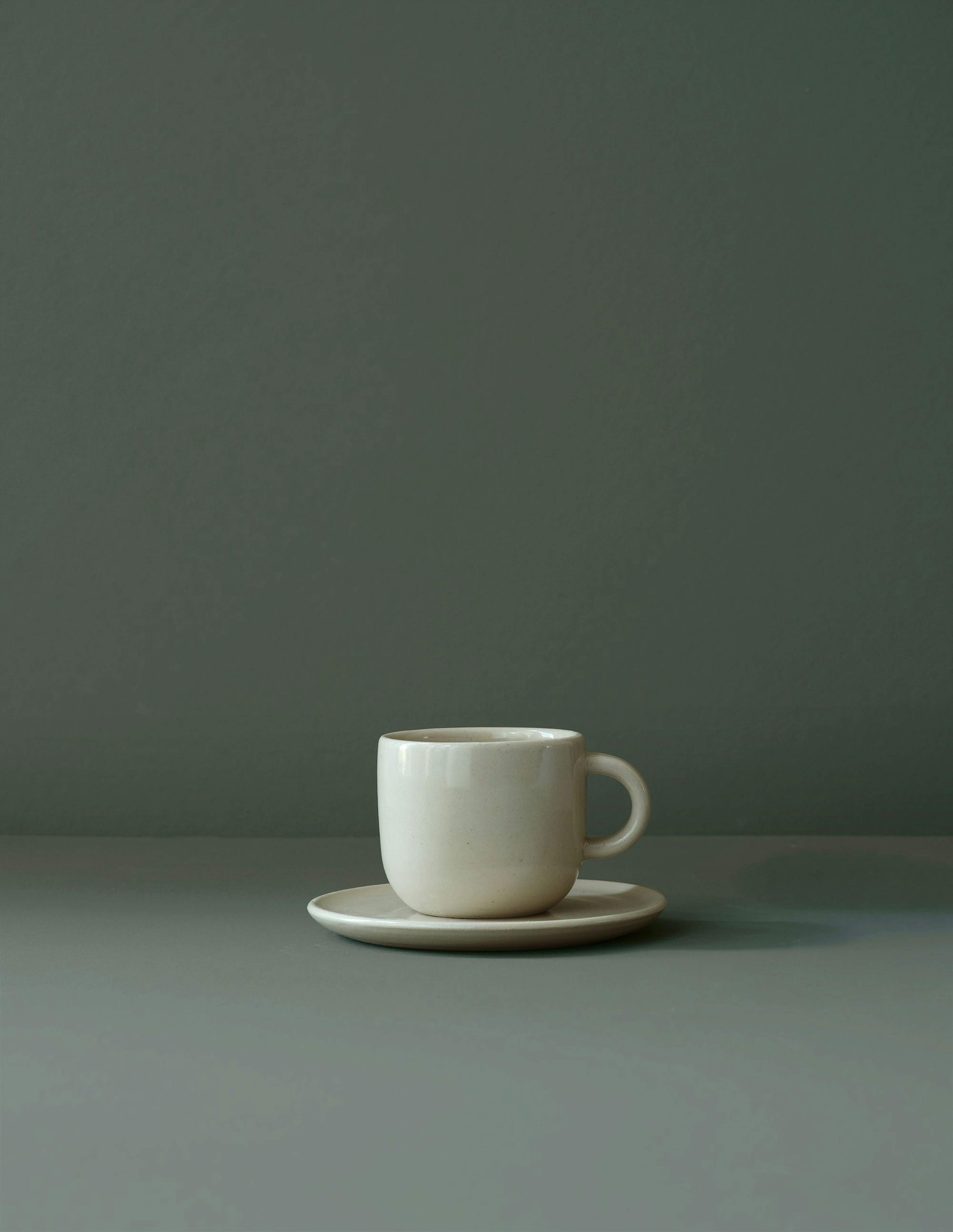 Our Ancher Studio collection is a selection of beautiful pieces crafted on the pottery wheel, created to complement and enhance your table setting. The Cappuccino Set contains a small mug and plate, both made in a light, beige clay with a transparent glaze all around giving it a tactile, warm look and feel.