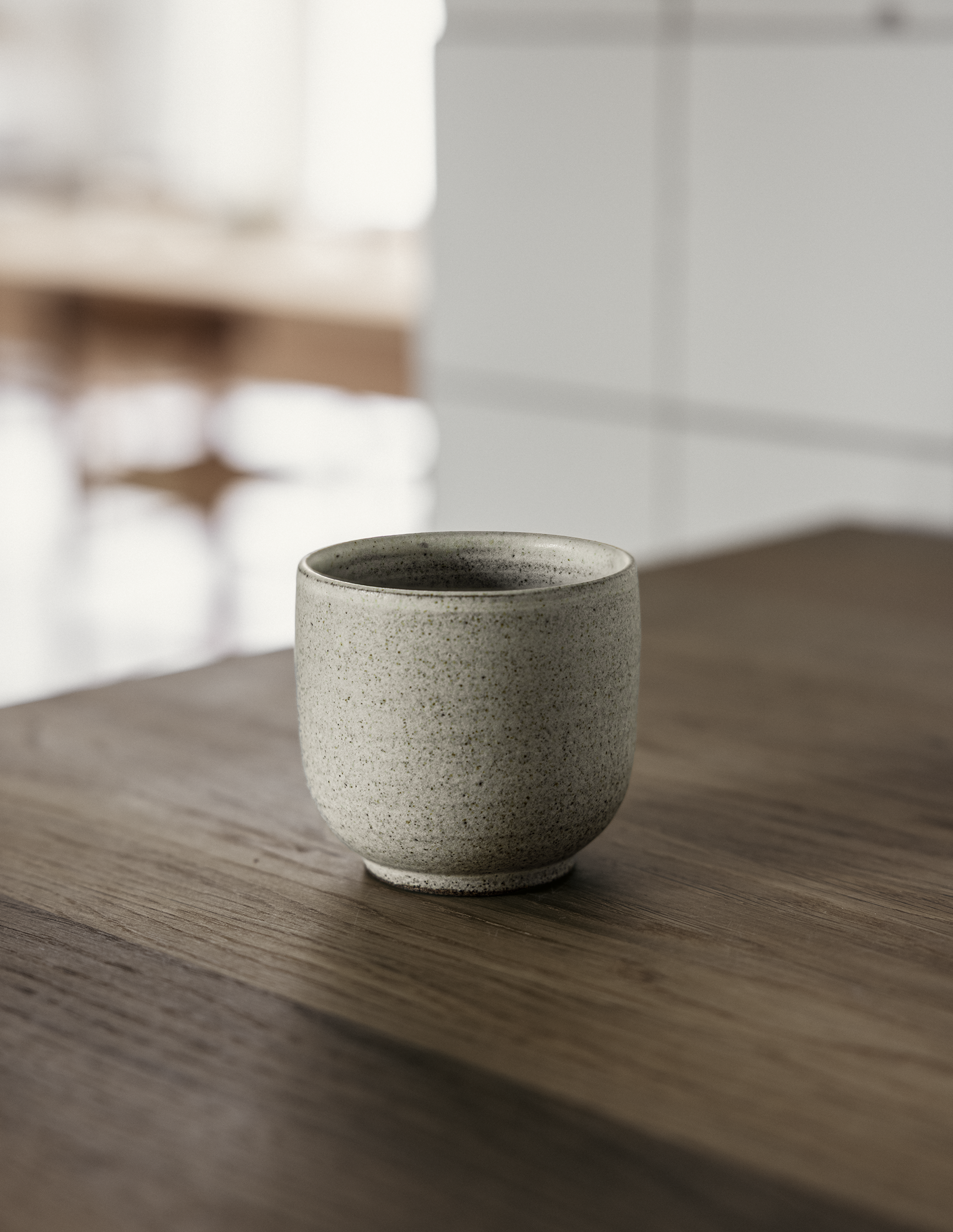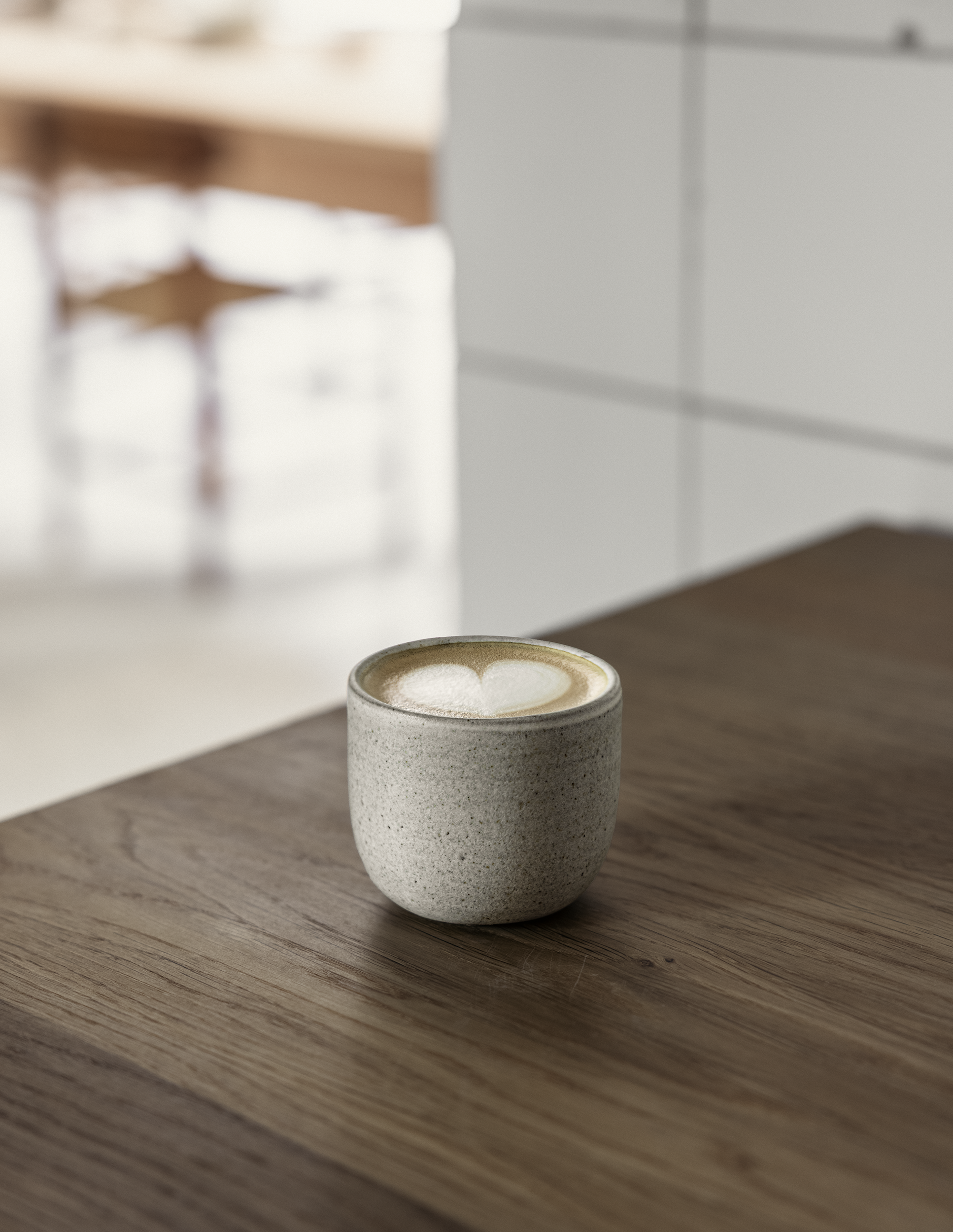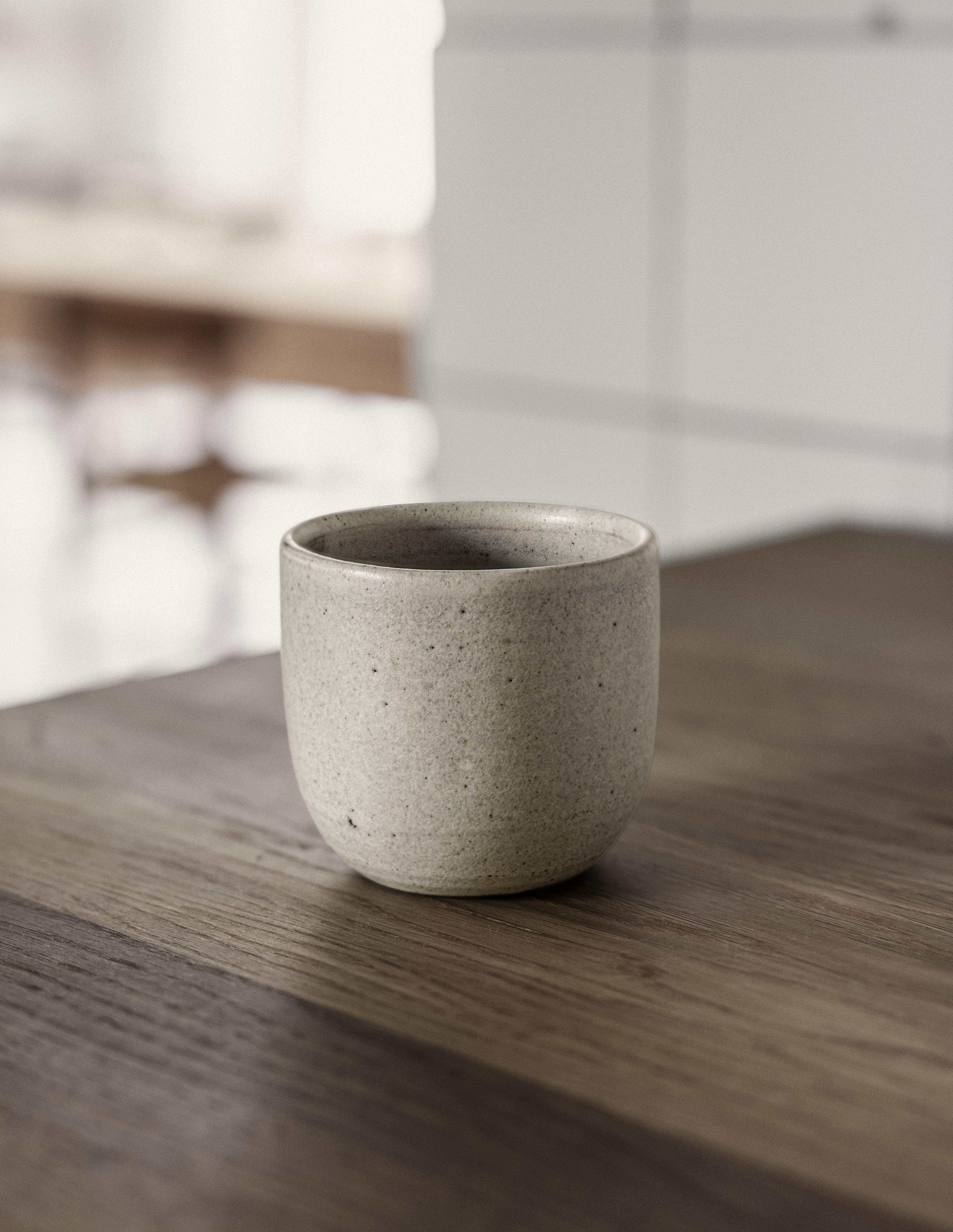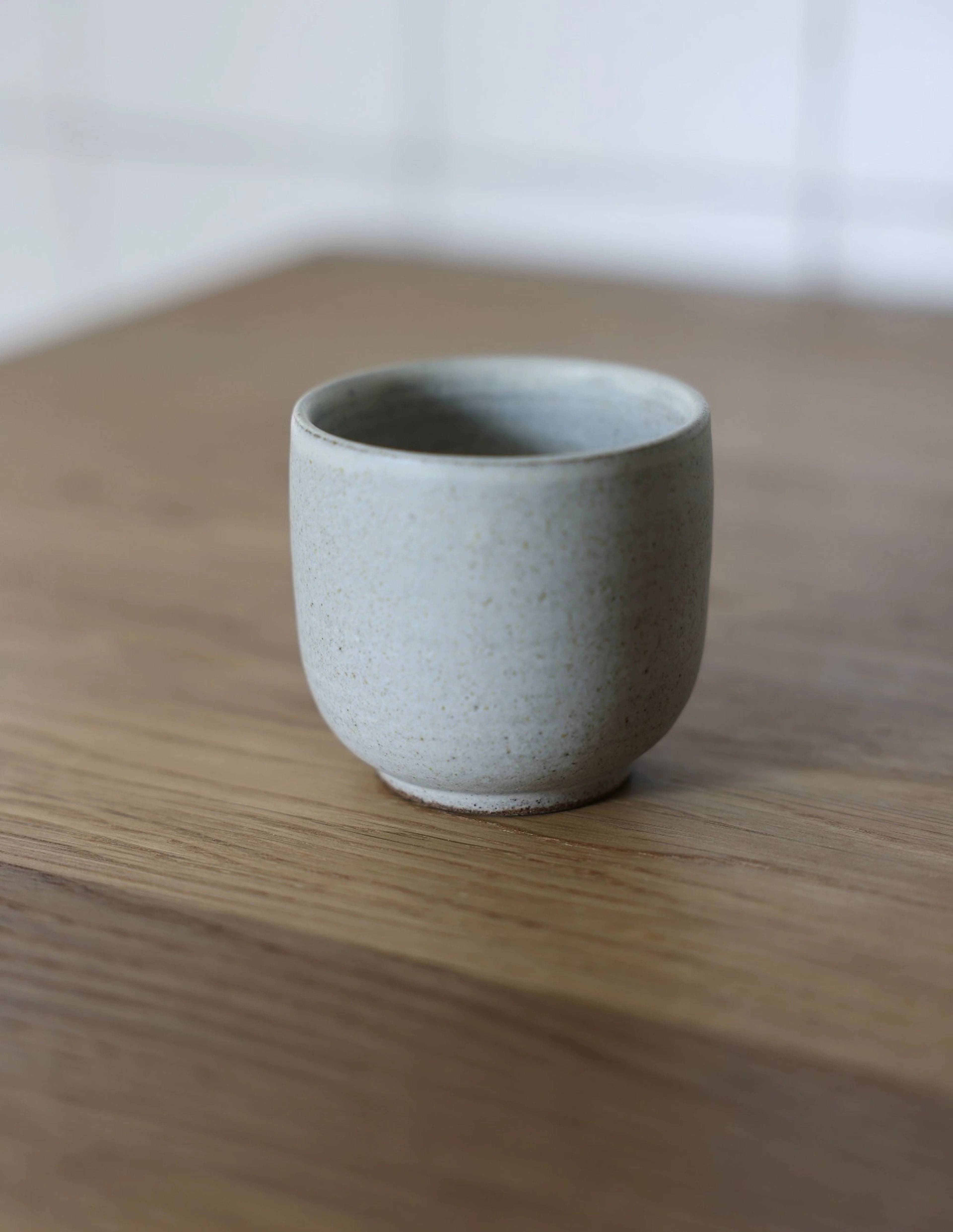 Our Studio Flat White Cup comes in two versions: A brown version with raw grey-brown clay outside and a matte white glaze inside that gives a fine textured feel and look. And a white version that is fully glazed for a smoother surface.